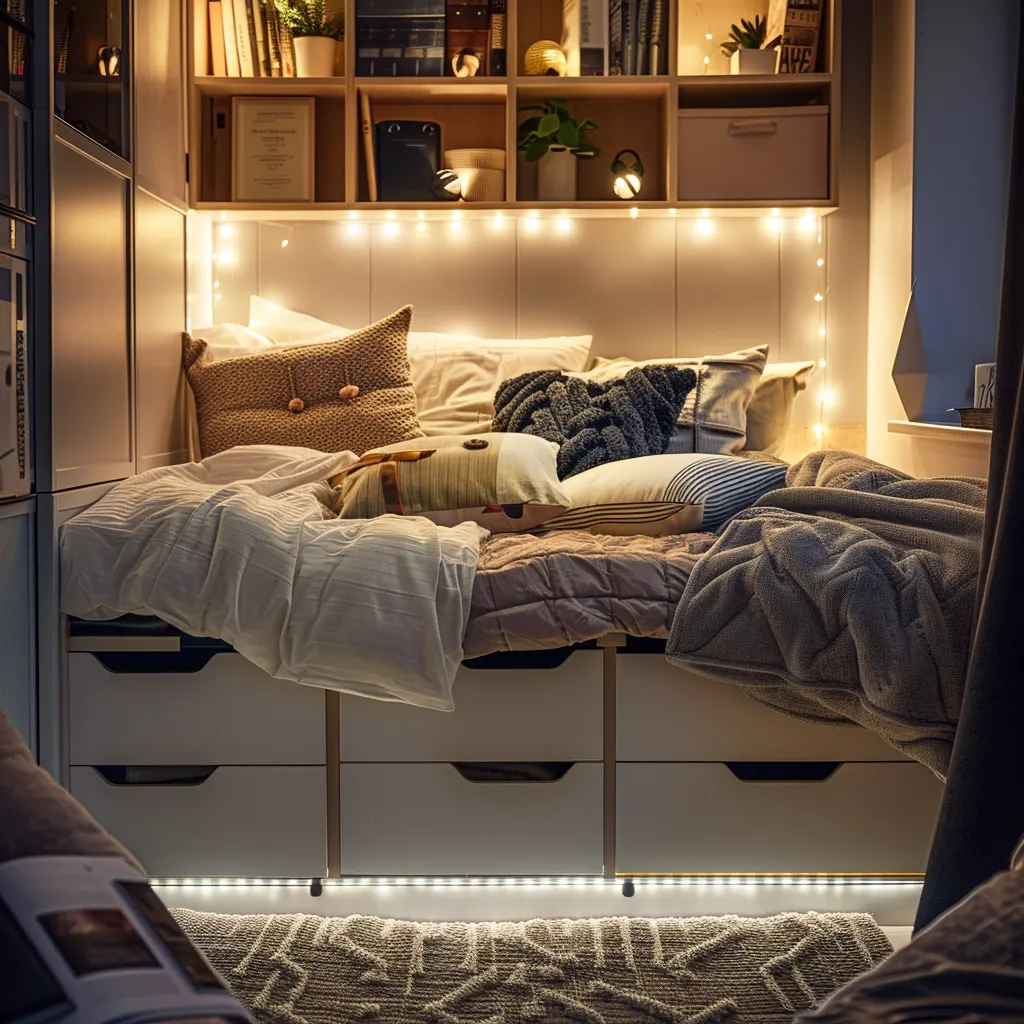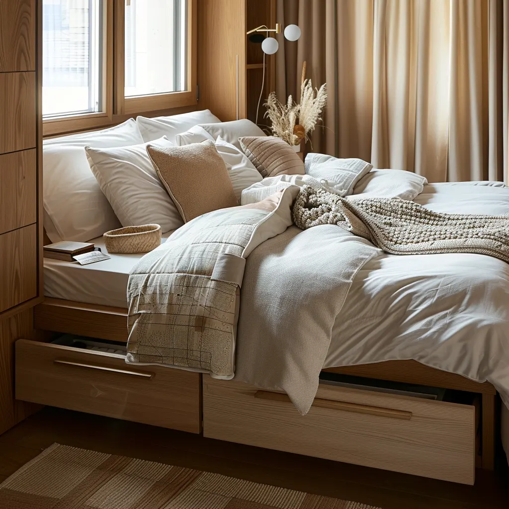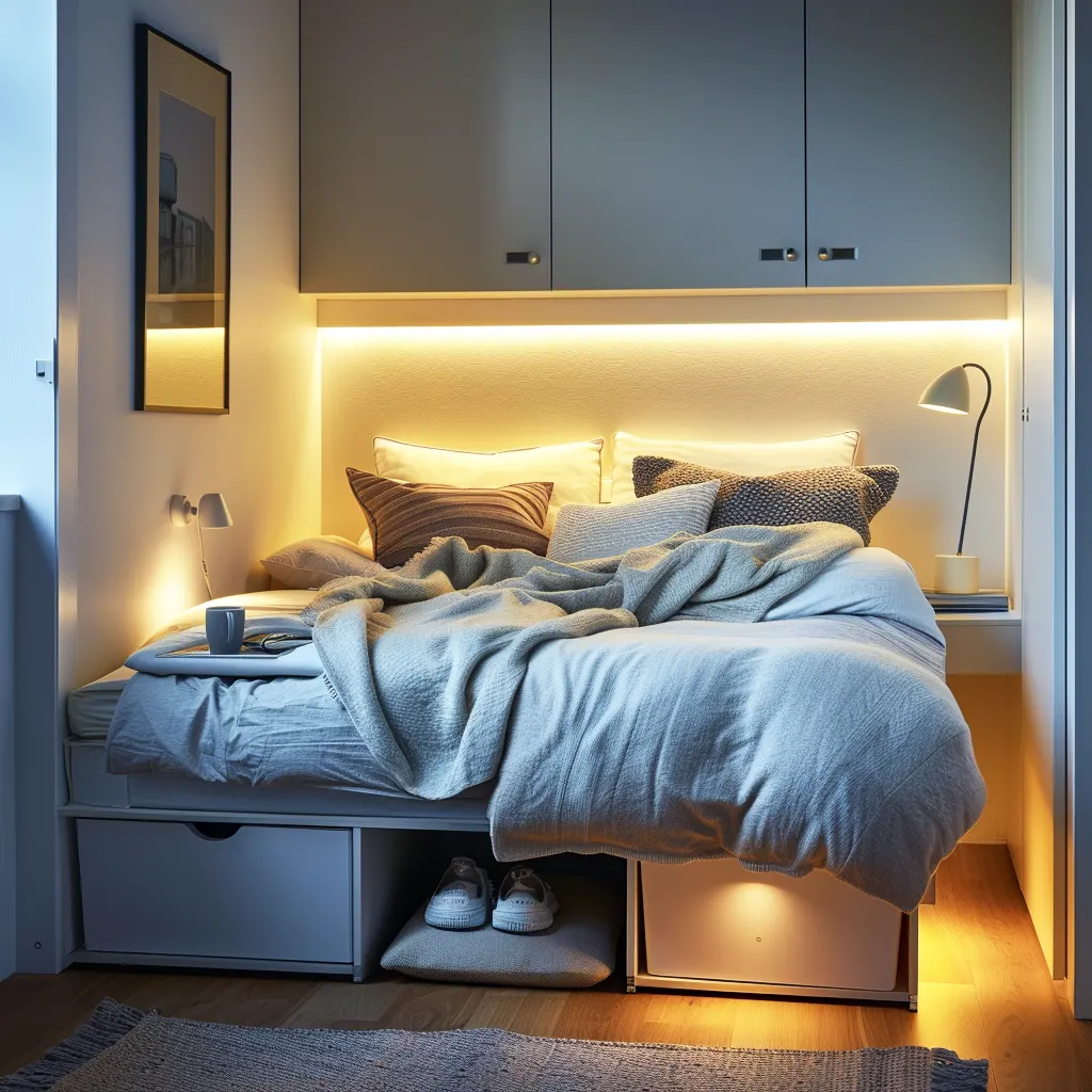 Klucz do sukcesu w małych sypialniach to maksymalne wykorzystanie dostępnej przestrzeni. Łóżka z wbudowanymi szufladami na pościel czy dodatkowe segmenty przechowywania to doskonały wybór. Wykorzystanie przestrzeni pod łóżkiem czy zamontowanie półek nad łóżkiem to inne sposoby na zyskanie dodatkowego miejsca do przechowywania. Alternatywnie, można zainwestować w łóżka podnoszone mechanicznie, które oferują jeszcze więcej przestrzeni przechowywania pod materacem.