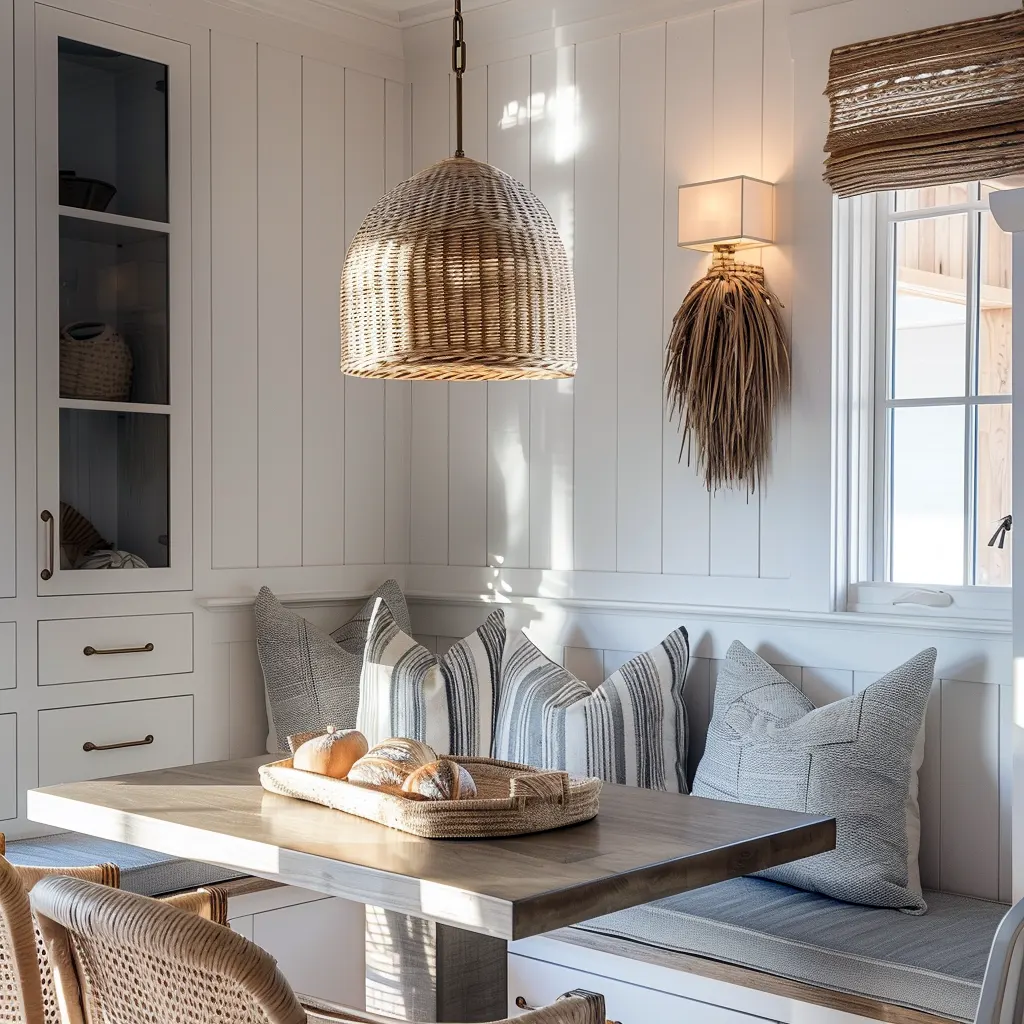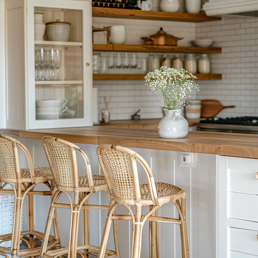 Rattan, choć kojarzony przede wszystkim z meblami ogrodowymi, coraz śmielej zdobywa przestrzeń domowych wnętrz, wnosząc lekkość i unikalny, eteryczny charakter. W kuchniach stylizowanych na Hampton, rattan może stać się ciekawym akcentem, który złagodzi surowość drewnianych powierzchni i doda wnętrzu przytulności.