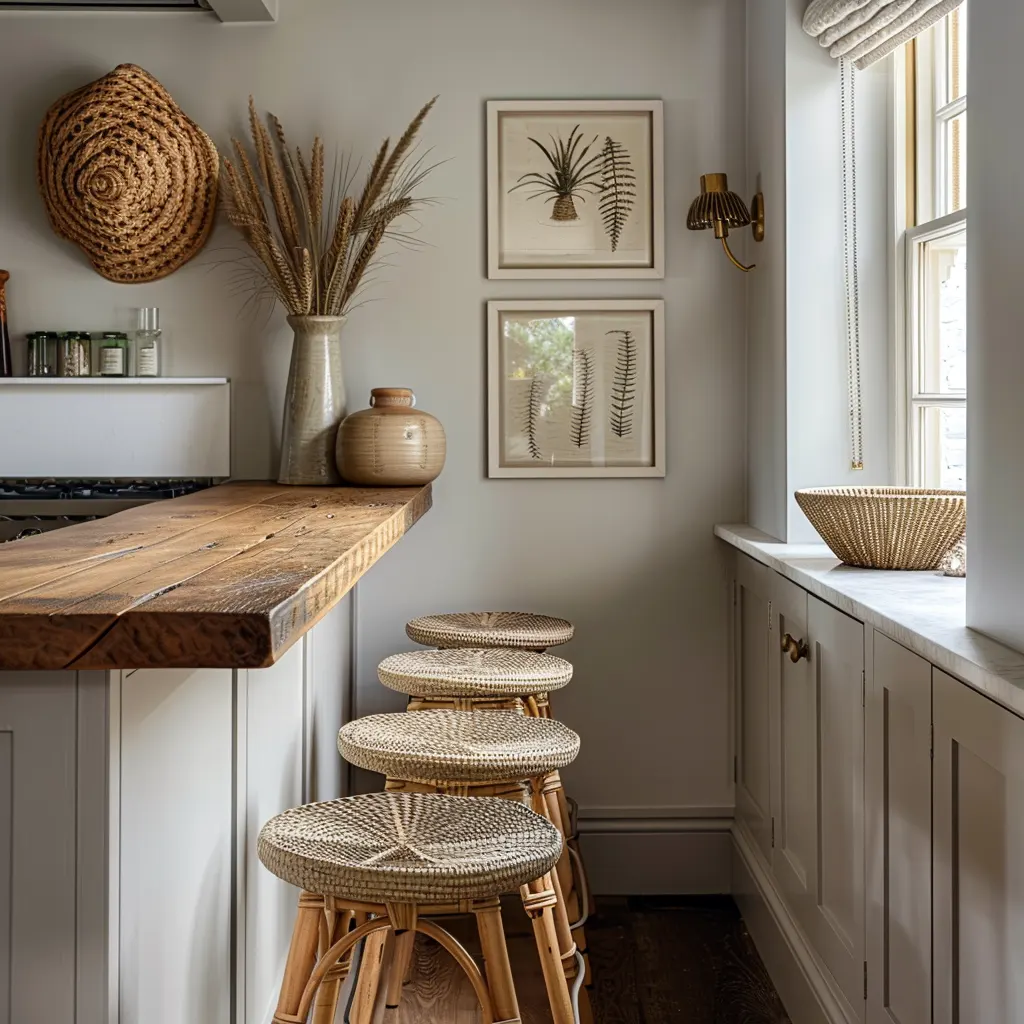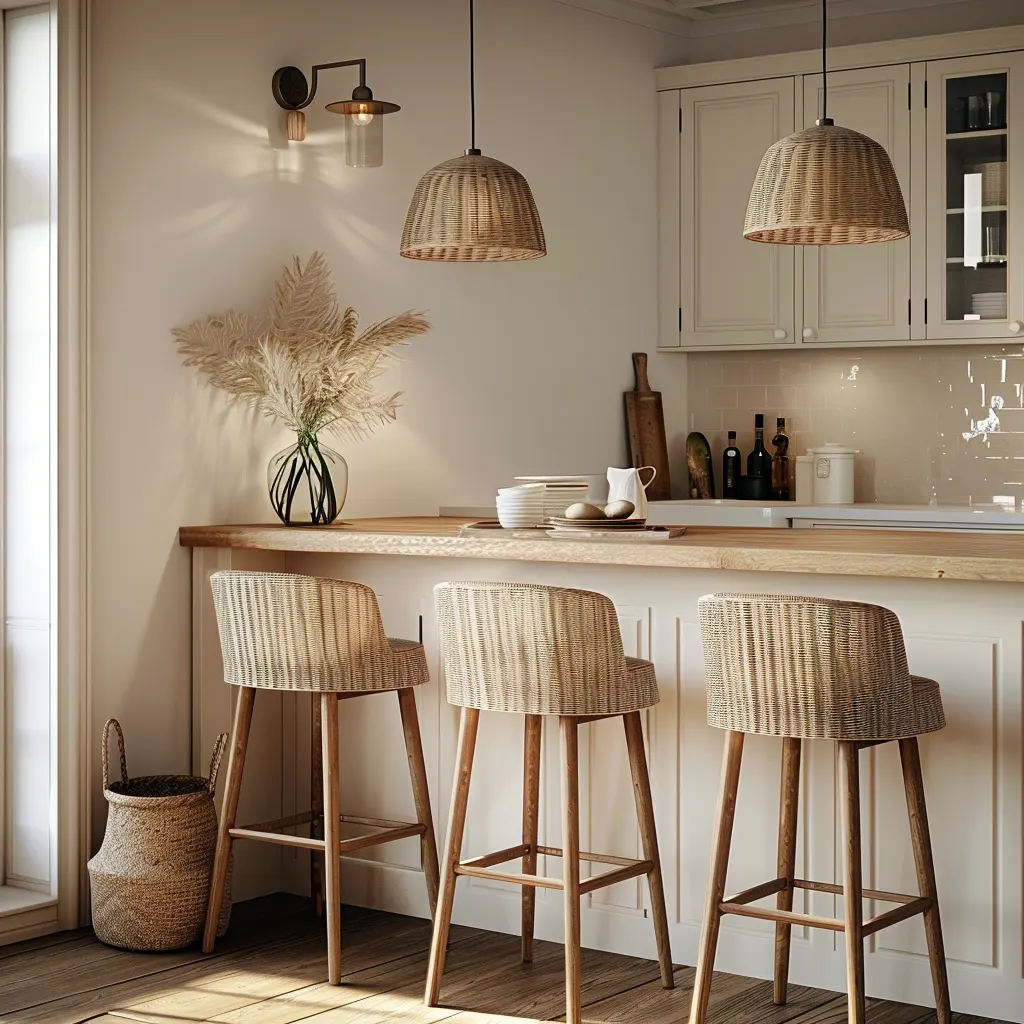 Kuchenne krzesła, taborety przy wyspie czy nawet oświetlenie – rattan doskonale sprawdzi się w tych rolach, wprowadzając do wnętrza lekkość i naturalny, pleciony wzór, który jest zarówno piękny, jak i funkcjonalny. Te elementy nie tylko są wygodne, ale także stanowią wizualny most między nowoczesnymi urządzeniami a tradycyjnymi materiałami, takimi jak drewno.