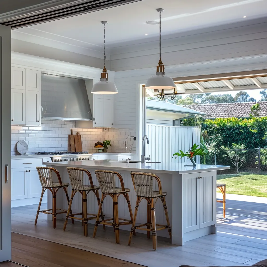 Kluczem do funkcjonalności w stylu Hampton jest przemyślane rozmieszczenie sprzętów i szafek. Planowanie przestrzeni powinno umożliwiać swobodny przepływ i łatwy dostęp do najczęściej używanych urządzeń i akcesoriów. Centralnym punktem kuchni często staje się wyspa – idealna nie tylko do przygotowywania posiłków, ale także jako miejsce spotkań rodzinnych i towarzyskich. Nowoczesne udogodnienia, takie jak ukryte urządzenia, czy zintegrowane systemy zarządzania domem, pozwalają na utrzymanie estetycznego minimalizmu, jednocześnie zwiększając praktyczność użytkowania każdego elementu.