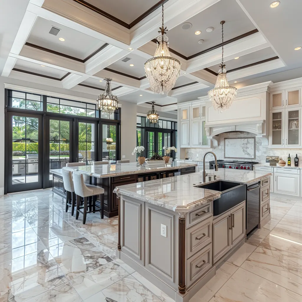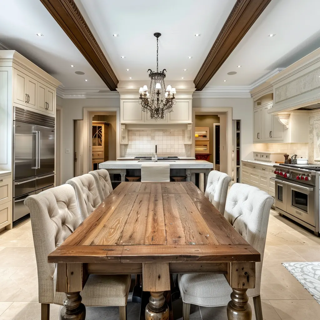 Charakterystyczne dla klasycznego stylu są ciężkie, rzeźbione meble z drewna, które często zdobią symetryczne układy. Drewno, najlepiej w ciemnych odcieniach, jest często wybierane za swoją solidność i trwałość, ale także za piękno, które wprowadza do każdego wnętrza. Blaty z naturalnego kamienia, takiego jak marmur czy granit, dodają przestrzeni nie tylko funkcjonalności, ale i luksusowego wyglądu.