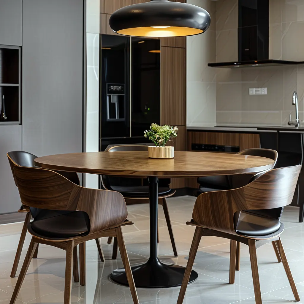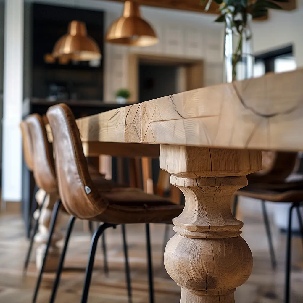 - Naturalne drewno. Drewniane elementy, takie jak fronty szafek czy eleganckie drewniane stoły, wprowadzają ciepło i klasyczną elegancję. Drewno świetnie komponuje się z nowoczesnymi, chłodnymi materiałami, tworząc harmonijną całość.