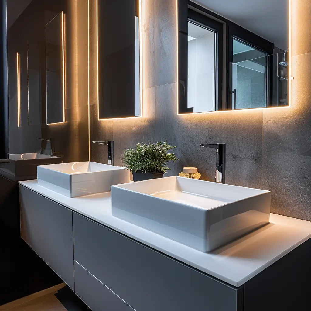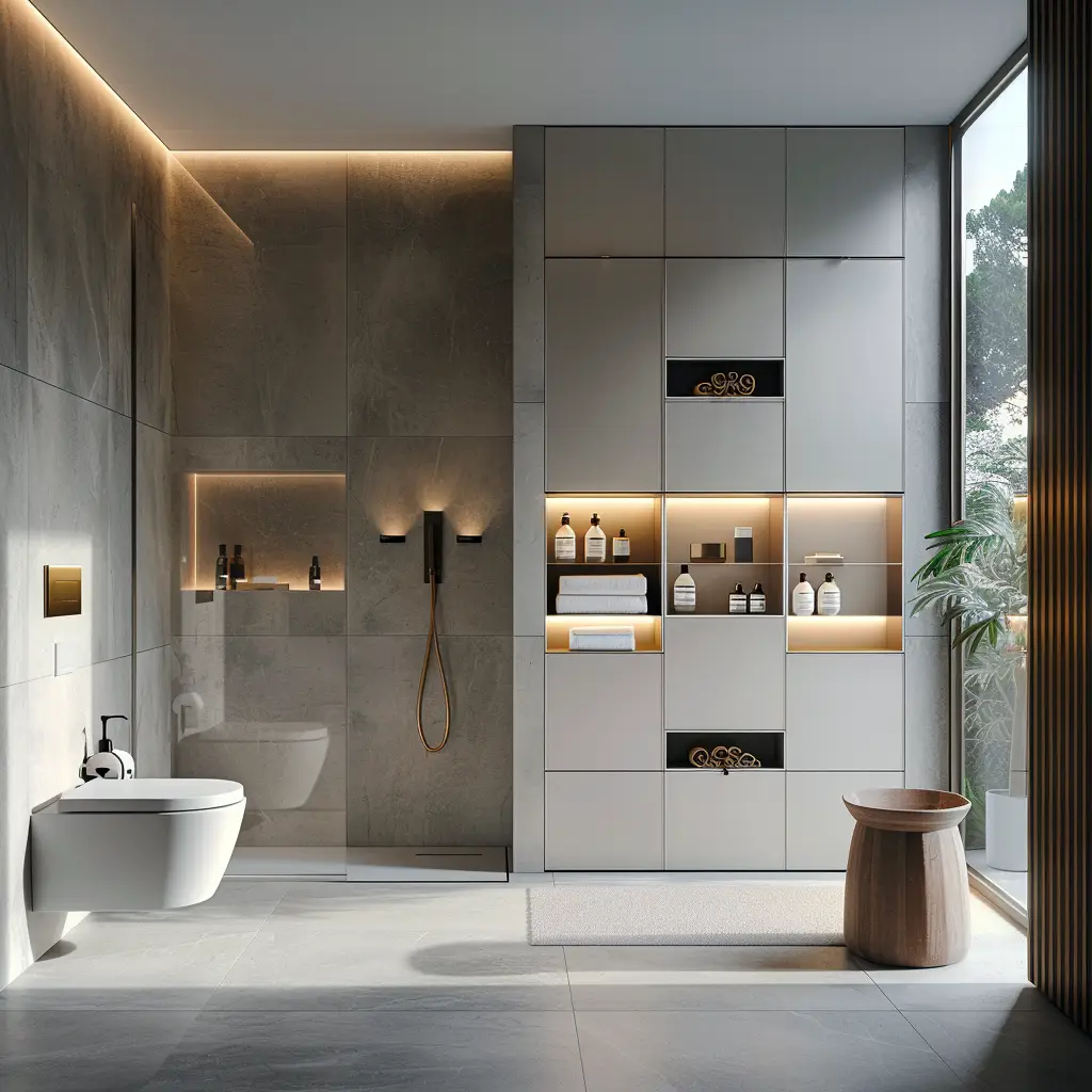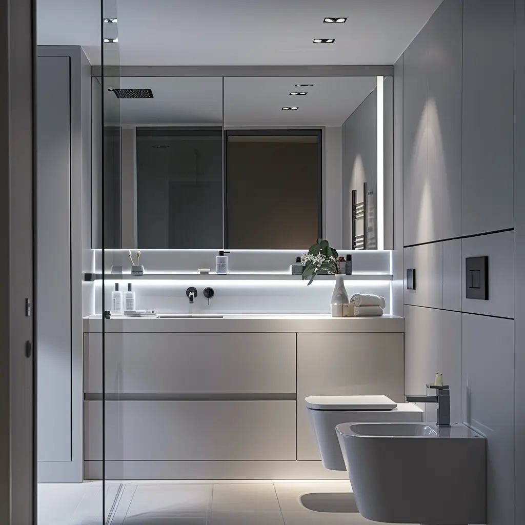 W nowoczesnej łazience każdy centymetr przestrzeni jest starannie zaplanowany. Szafki i schowki są zintegrowane ze ścianami, tworząc jednolitą powierzchnię. Popularnym rozwiązaniem są meble podwieszane, które nie tylko ułatwiają utrzymanie czystości, ale również optycznie powiększają przestrzeń.
