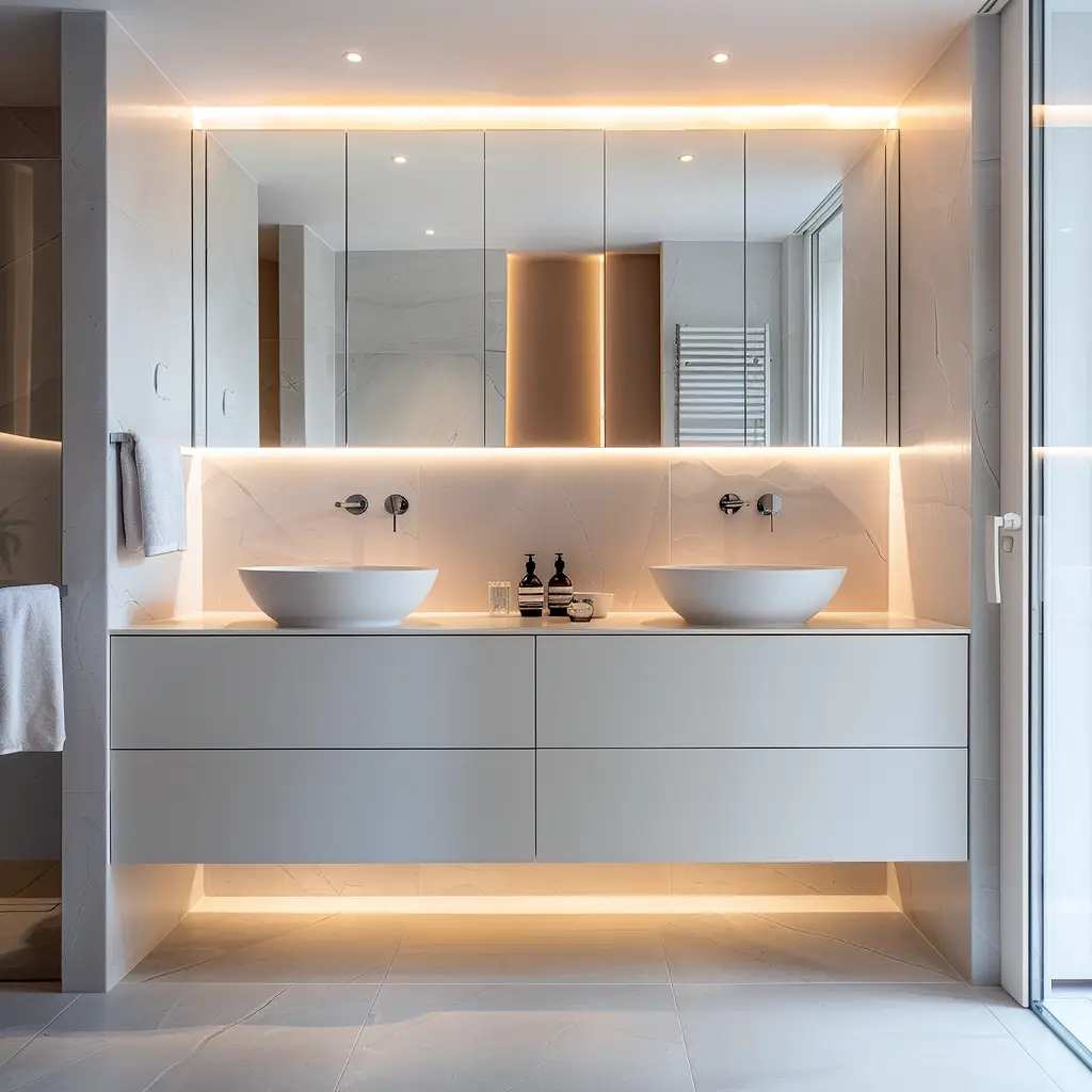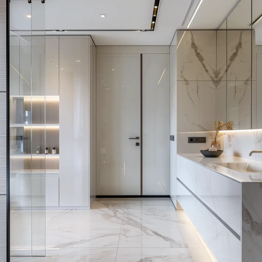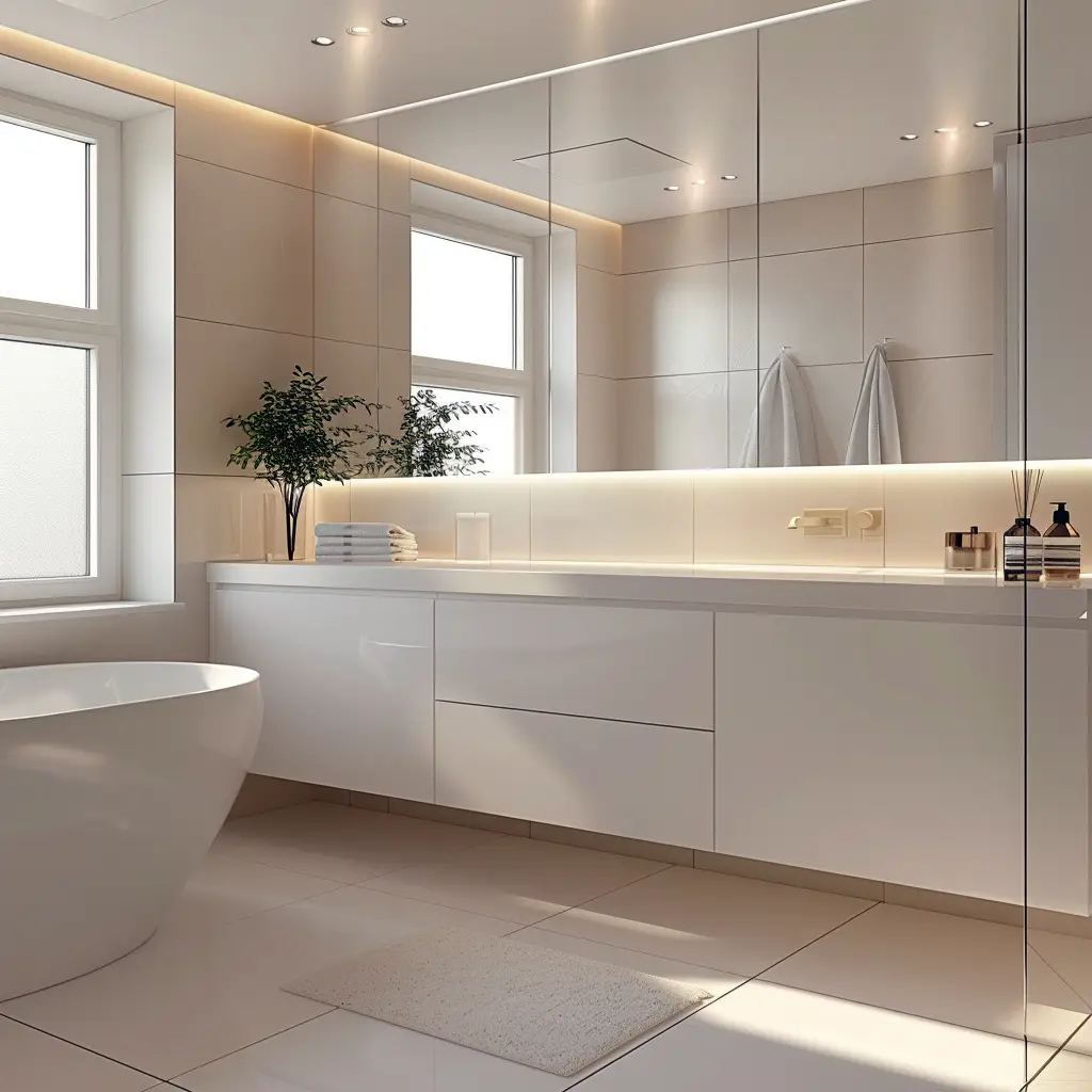 W nowoczesnej łazience każdy centymetr przestrzeni jest starannie zaplanowany. Szafki i schowki są zintegrowane ze ścianami, tworząc jednolitą powierzchnię. Popularnym rozwiązaniem są meble podwieszane, które nie tylko ułatwiają utrzymanie czystości, ale również optycznie powiększają przestrzeń.