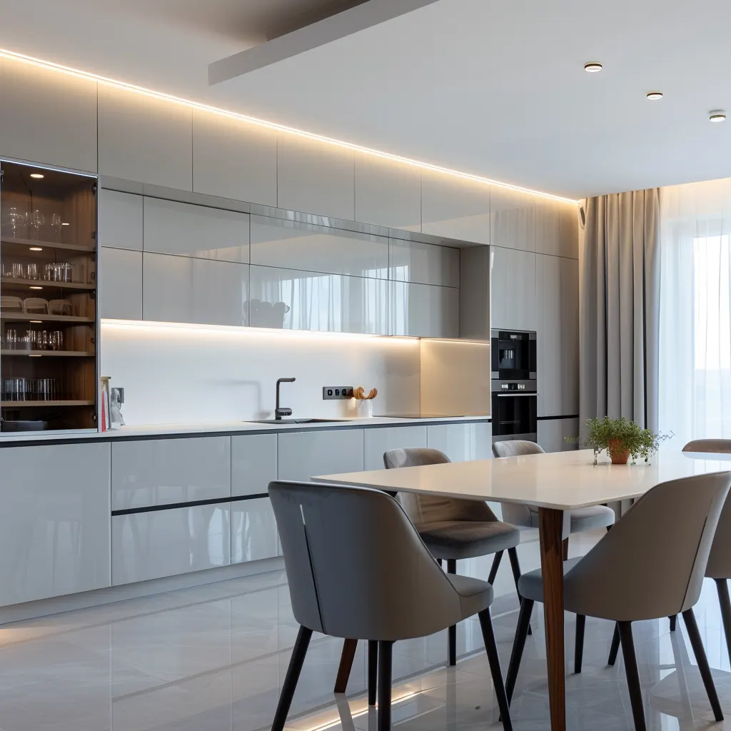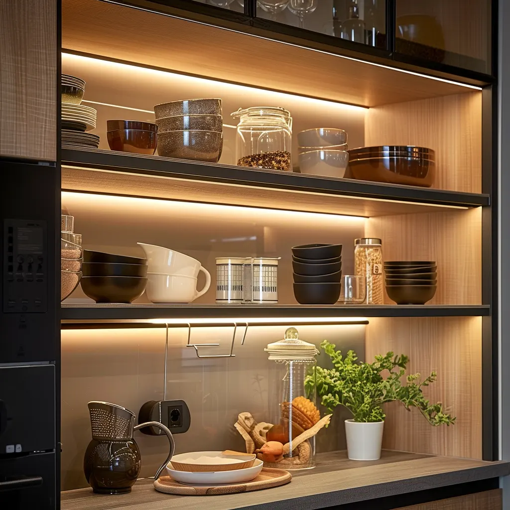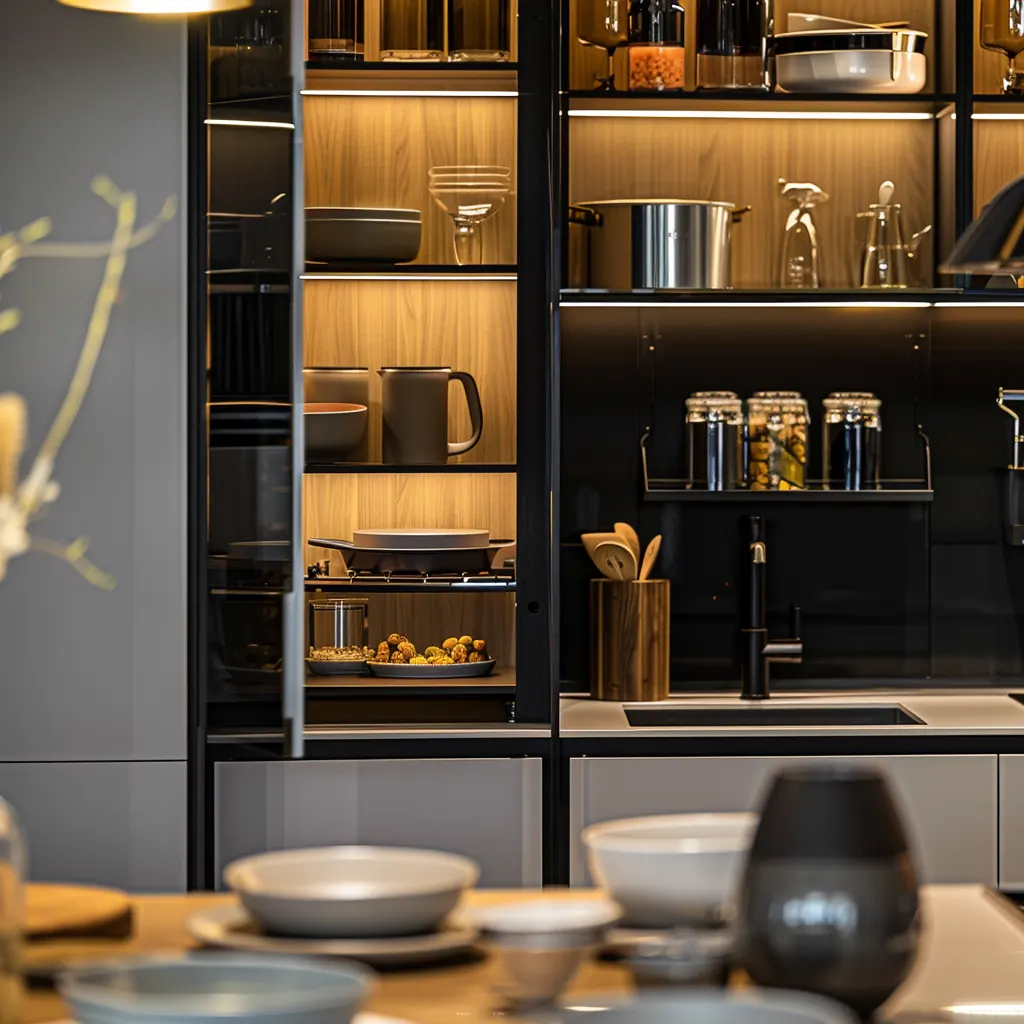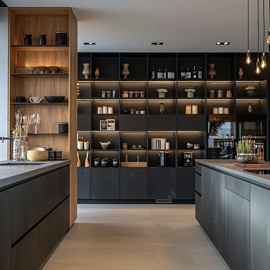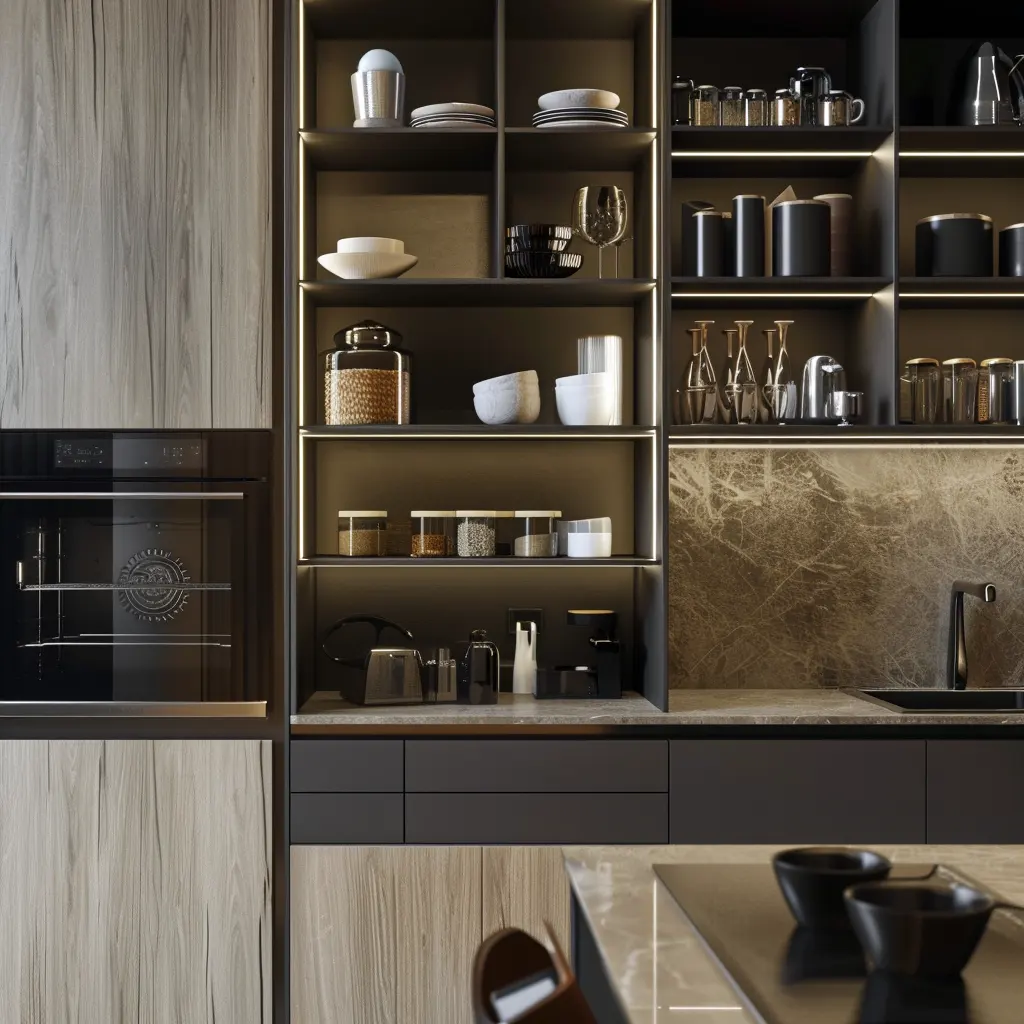 Nowoczesne kuchnie coraz częściej łączą otwarte półki z zamkniętymi szafkami, wykorzystując zalety obu rozwiązań. Projektanci rekomendują umieszczanie otwartych półek w miejscach łatwo dostępnych, gdzie mogą pełnić funkcję dekoracyjną oraz praktyczną, a zamknięte szafki planować w miejscach mniej eksponowanych, gdzie przechowujemy np. sprzęt kuchenny czy zapasy.