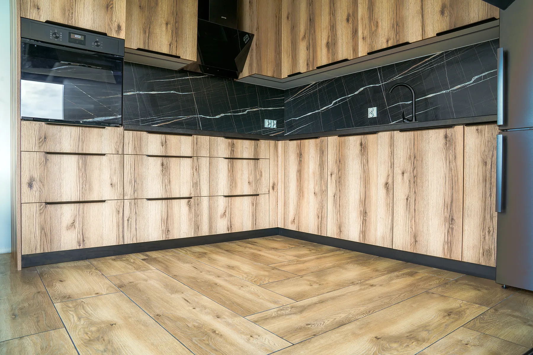W naszej najnowszej realizacji prezentujemy kuchnię, która idealnie łączy nowoczesność z męskim charakterem. Dominujące odcienie czerni w połączeniu z naturalnymi elementami drewna tworzą przestrzeń zarówno elegancką, jak i przytulną. Kuchnia została zaprojektowana tak, aby sprostać wymaganiom nowoczesnego mężczyzny ceniącego styl i funkcjonalność.