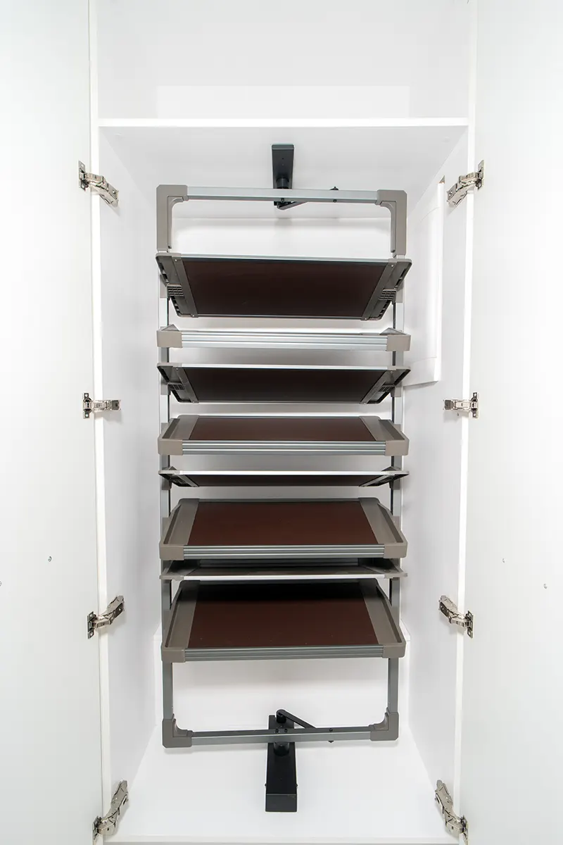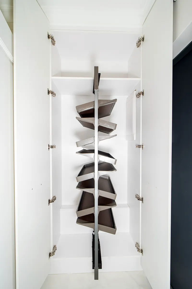 Specjalnie dla kolekcjonerów obuwia przygotowaliśmy półki obrotowe, które mogą pomieścić aż 36 par butów. To rozwiązanie nie tylko maksymalizuje przestrzeń, ale także umożliwia łatwy dostęp do każdej pary.