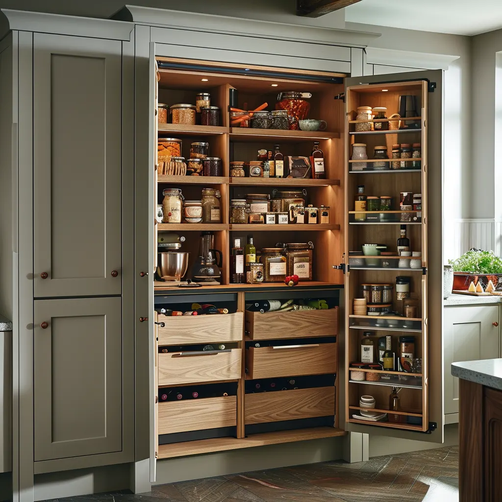 Dobrze zaprojektowane szafki i szuflady to fundament funkcjonalnej kuchni. Eleganckie, ale łatwo dostępne rozmieszczenie elementów, takich jak szklanki, talerze czy przyprawy, jest kluczowe. Goście mogą łatwo sięgnąć po potrzebne im przedmioty, co sprawia, że czują się jak u siebie w domu.