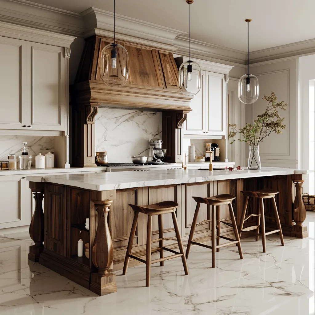 Dobre oświetlenie nie tylko podkreśla piękno klasycznej kuchni, ale również tworzy odpowiednią atmosferę. Lampy wiszące nad wyspą kuchenną, ciepłe światło podszafkowe czy eleganckie żyrandole mogą zmienić zwykłe gotowanie w niezwykłe wydarzenie, dodając przestrzeni ciepła i przytulności, sprzyjając długim rozmowom i miłym chwilom.