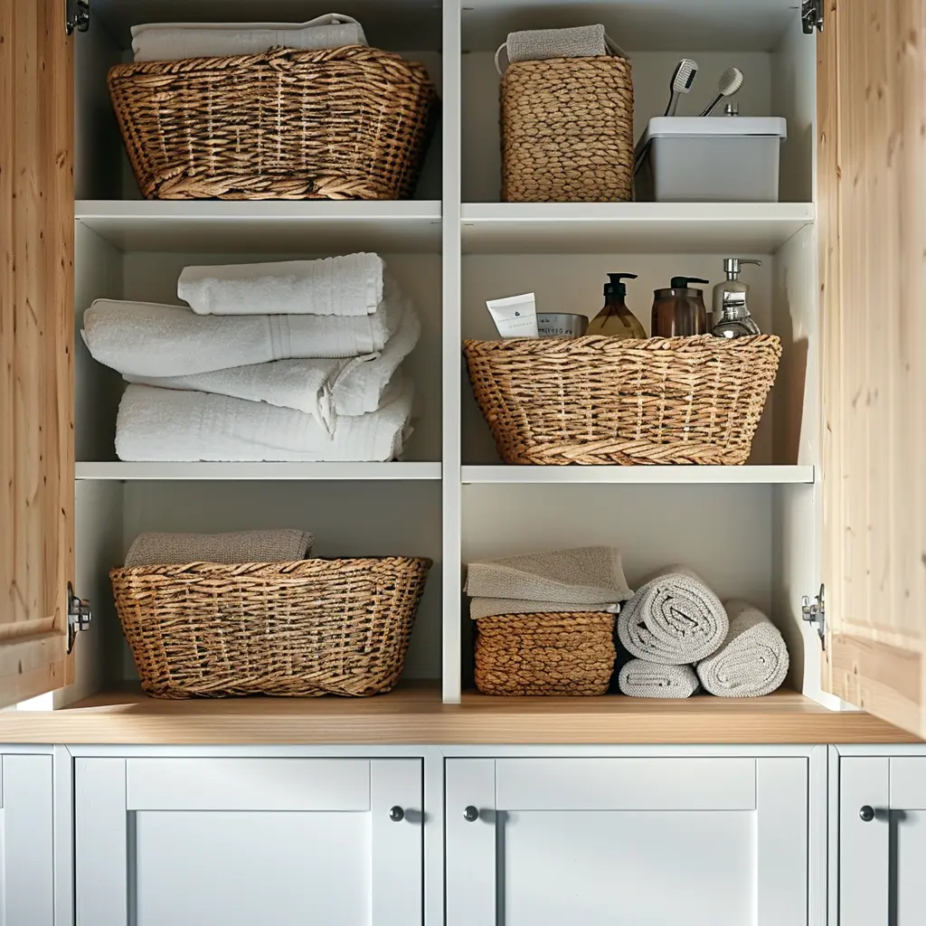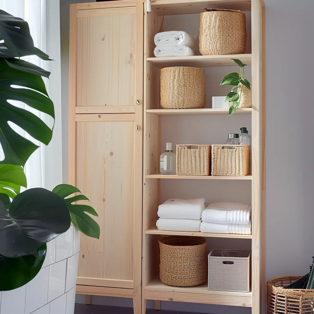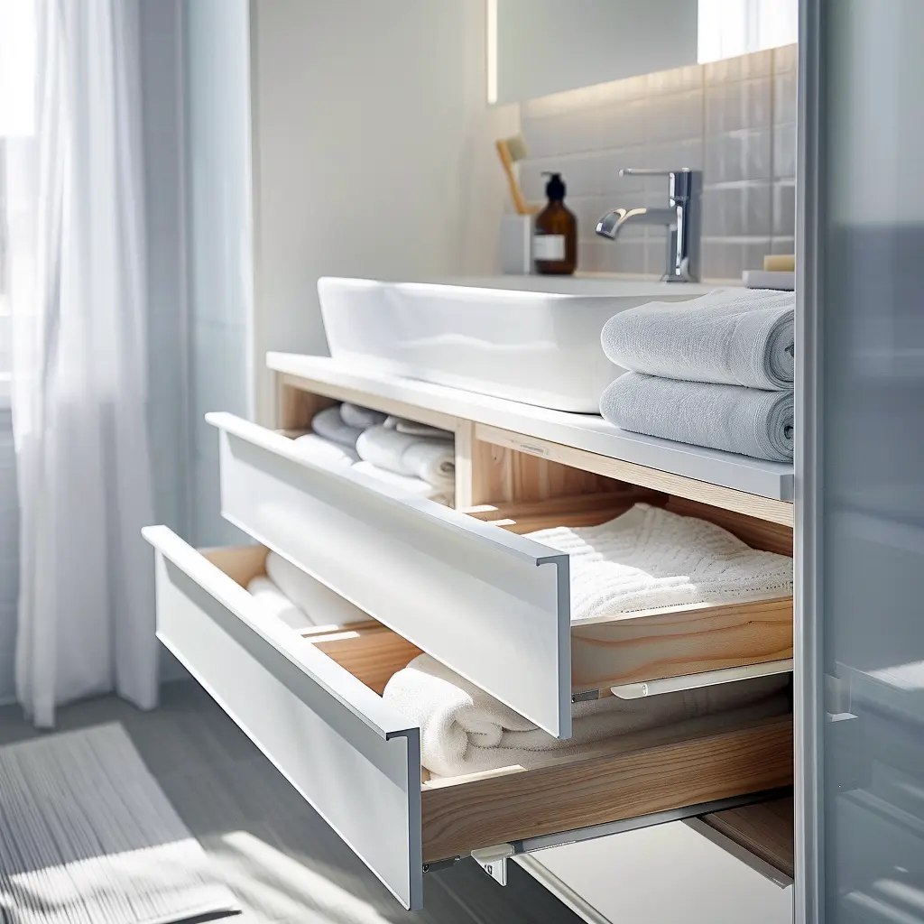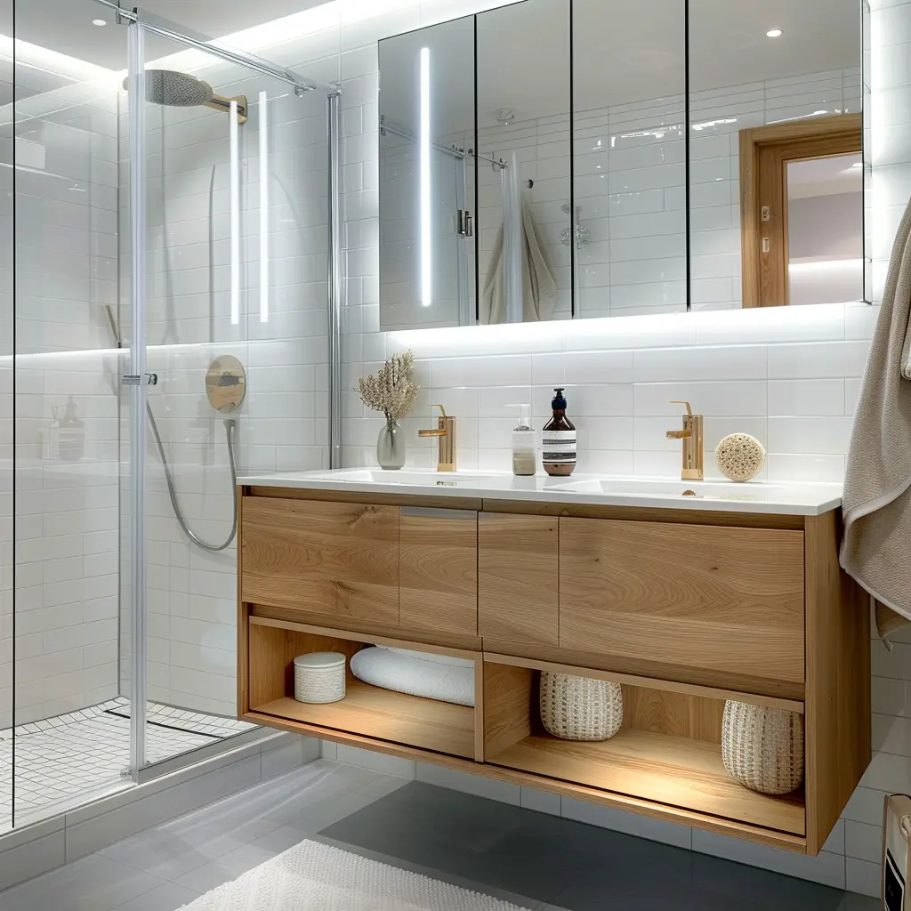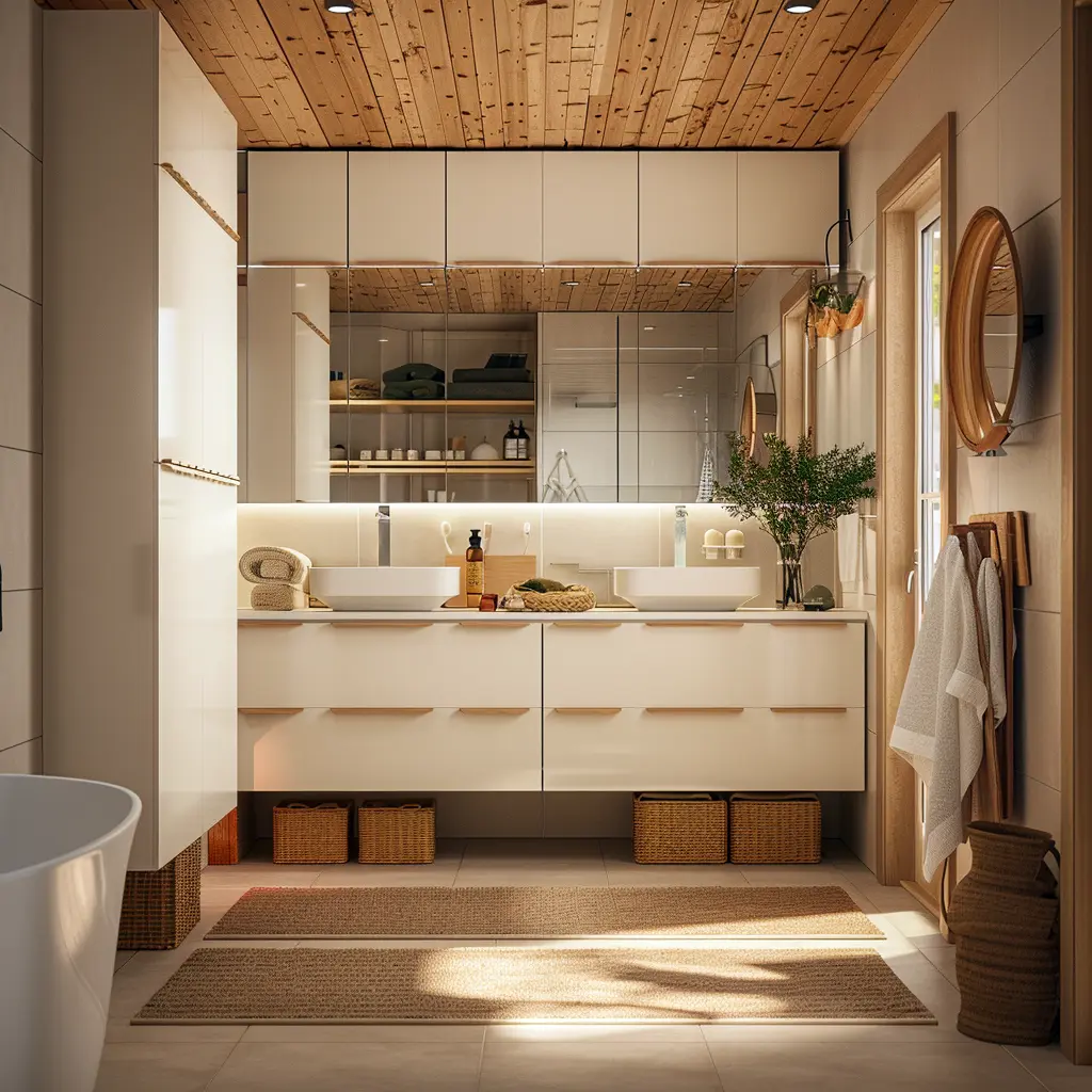 Podstawą skandynawskiej łazienki są funkcjonalne meble, które łączą w sobie prostotę formy z praktycznością użytkowania. Zabudowa meblowa w tym stylu charakteryzuje się czystymi liniami i jasnymi kolorami. Szafki podumywalkowe najczęściej wykonane są z jasnego drewna lub wykończone białym, matowym lakierem. Kluczowe jest zastosowanie pojemnych szuflad z organizerami, które pozwalają utrzymać porządek i sprawiają, że każdy przedmiot ma swoje miejsce.