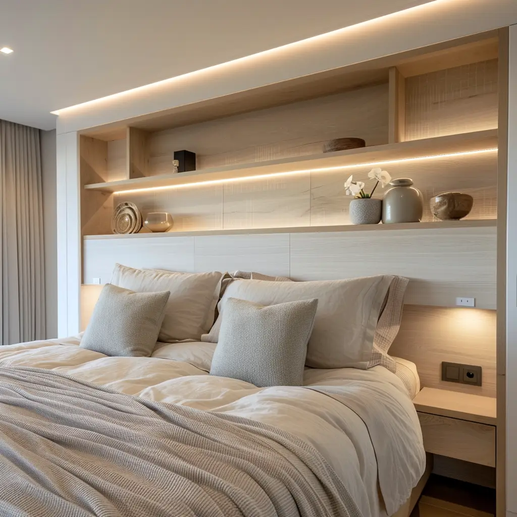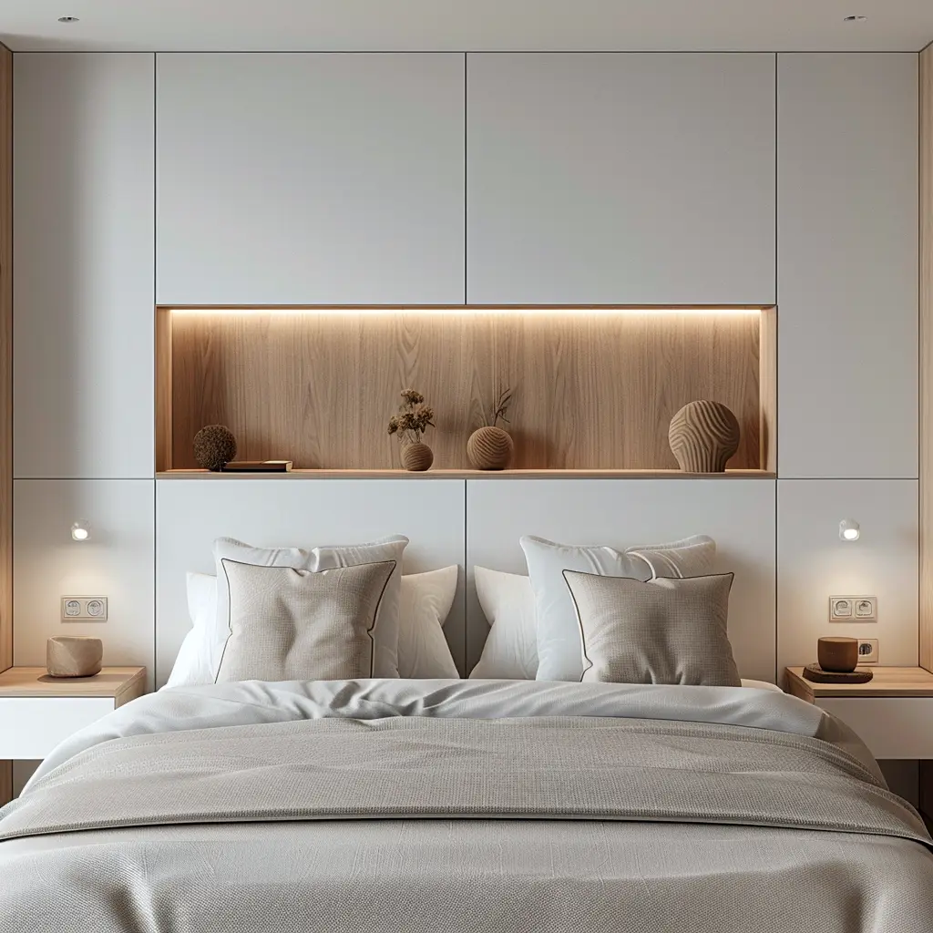 Skandynawska sypialnia to także mistrzowskie połączenie estetyki z funkcjonalnością. Przestronne szafy i komody o prostych frontach zapewniają miejsce na przechowywanie ubrań i pościeli, nie dominując przy tym wnętrza. Przemyślane systemy organizacji, takie jak szuflady z przegródkami czy minimalistyczne wieszaki, pomagają utrzymać porządek. W skandynawskiej sypialni nie znajdziemy zbędnych przedmiotów – każdy element ma swoje miejsce i przeznaczenie, co pomaga zachować spokojny, harmonijny charakter wnętrza.