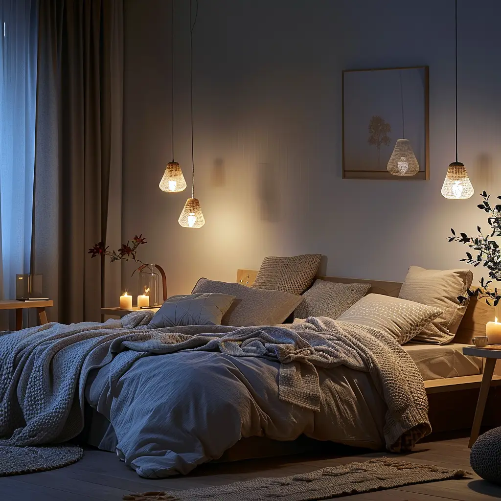 Mimo minimalistycznego charakteru, skandynawska sypialnia pozostaje niezwykle przytulnym miejscem. Kluczem do stworzenia tej atmosfery jest odpowiednie połączenie różnych faktur i materiałów. Miękki dywan przy łóżku, który przyjemnie otula stopy po przebudzeniu, wielowarstwowe łóżko z puszystą kołdrą i różnorodnymi poduszkami, a także delikatne zasłony poruszające się na wietrze – wszystko to tworzy przestrzeń, która zachęca do relaksu. Dodatki w postaci świec, książek czy roślin doniczkowych dopełniają całości, wprowadzając element przytulności i osobistego charakteru.