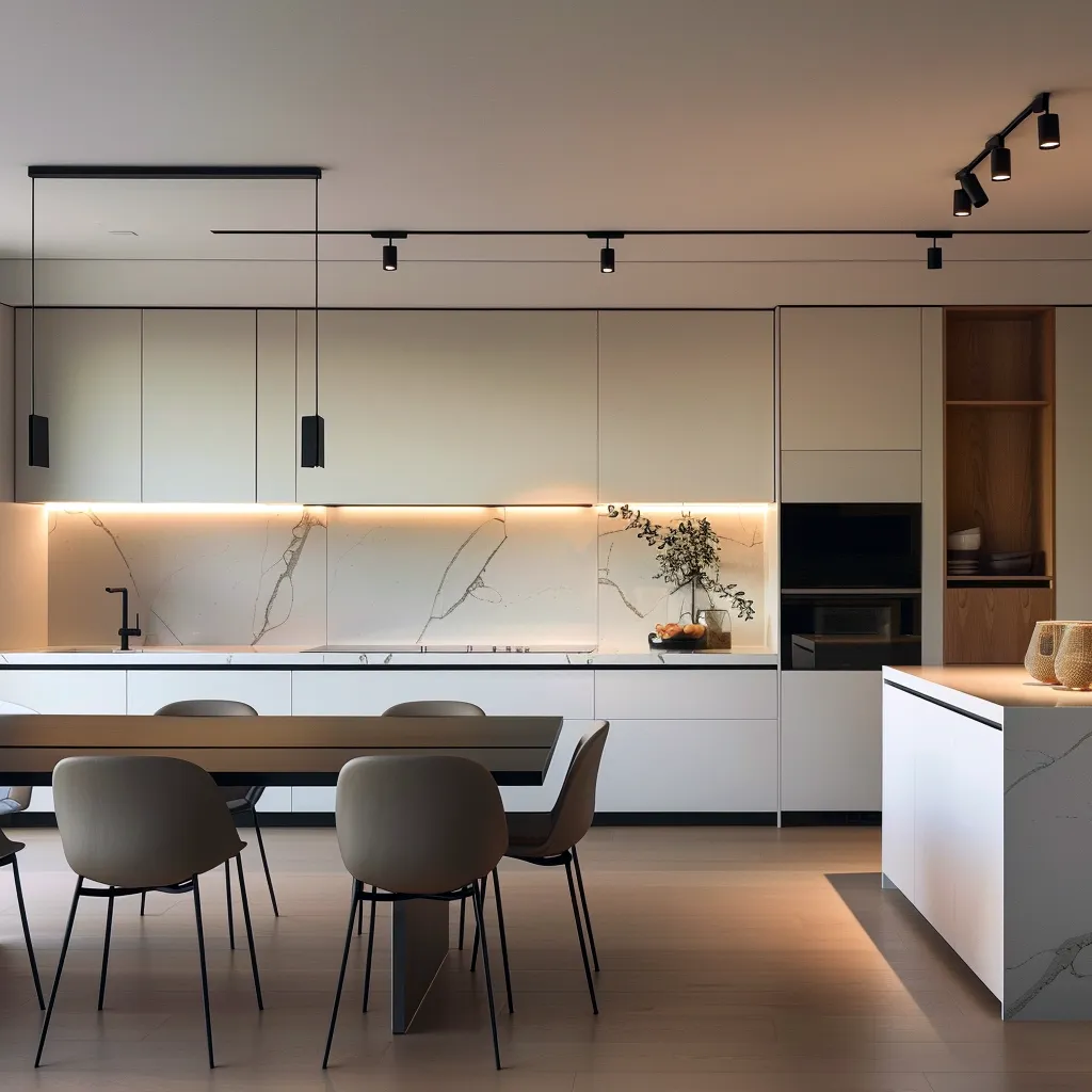 Nowoczesna przestrzeń kuchenno-jadalniana powinna tworzyć harmonijną całość. Kluczem do osiągnięcia tego efektu jest konsekwentne stosowanie wybranych materiałów i kolorów w obu strefach. W trendach dominują obecnie minimalistyczne fronty o gładkich powierzchniach, często w połączeniu z naturalnymi akcentami, które ocieplają wnętrze.