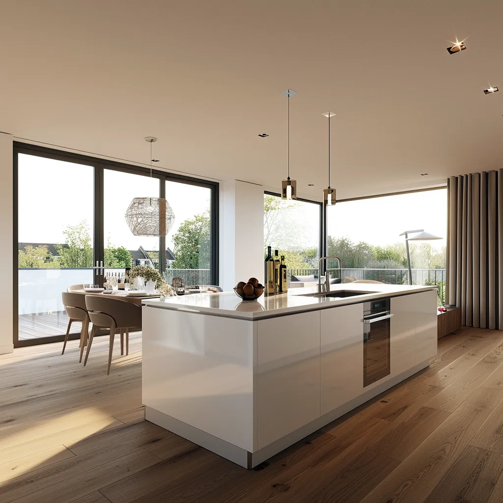 Kluczowym elementem w nowoczesnej kuchni połączonej z jadalnią może stać się wyspa kuchenna. To rozwiązanie nie tylko zapewnia dodatkową powierzchnię roboczą, ale również naturalnie wydziela strefy, nie zaburzając przy tym otwartego charakteru wnętrza. Wyspa może pełnić różnorodne funkcje – od blatu roboczego, przez miejsce do gotowania, aż po dodatkową powierzchnię do spożywania szybkich posiłków.