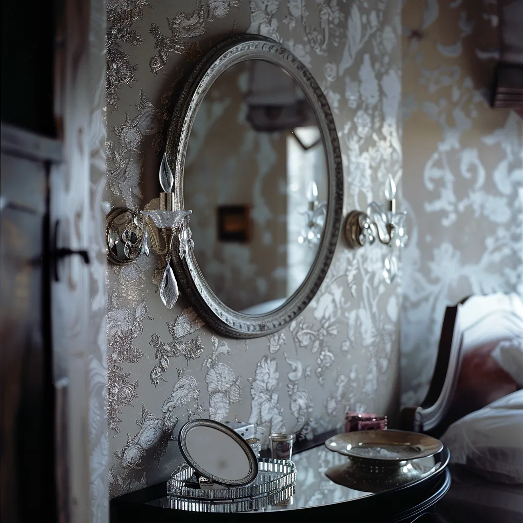 Lustra to kolejny kluczowy element stylu glamour. Duże, efektowne lustro w zdobionej ramie nie tylko optycznie powiększy przestrzeń, ale stanie się też dominującym elementem dekoracyjnym. Popularne są również lustra fazowane lub kompozycje z mniejszych luster w ozdobnych ramach, które tworzą na ścianie prawdziwą galerię blasku.