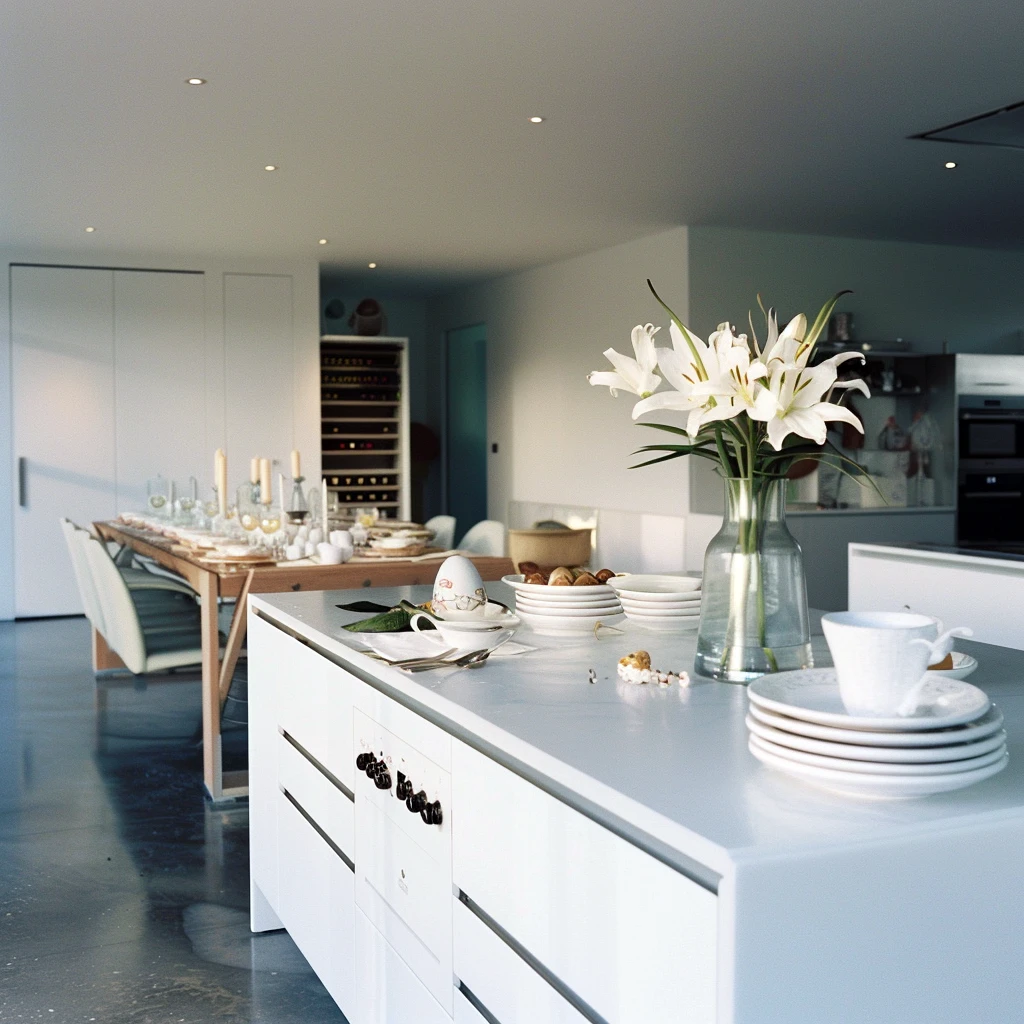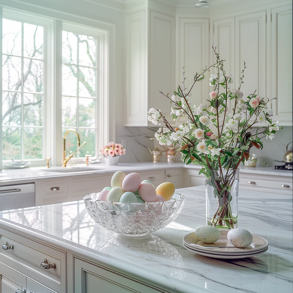 Wielkanocne dekoracje w kuchni mogą być subtelne, ale znaczące – świeże kwiaty w doniczkach, ręcznie malowane pisanki w kryształowej misie czy lniane ściereczki z wiosennymi motywami nadadzą przestrzeni świątecznego charakteru.