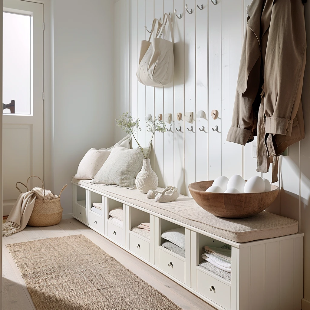 Sprytnym rozwiązaniem są również meble wielofunkcyjne – ławki z pojemnikami, pufy ze schowkami czy stoliki kawowe z szufladami, gdzie możemy przechowywać sezonowe dekoracje i akcesoria.