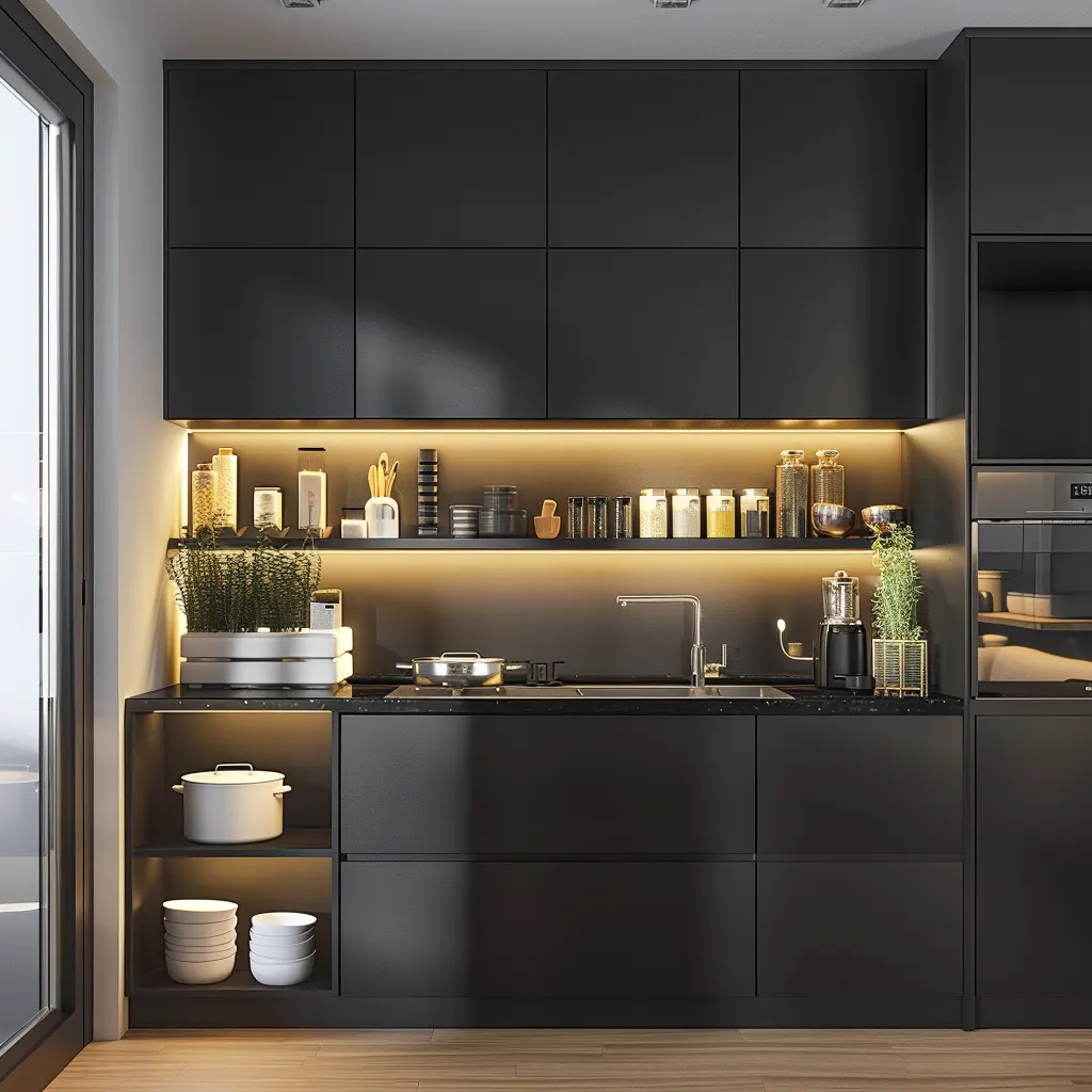 Centralnym punktem nowoczesnych kuchni jest prostota formy. Gładkie powierzchnie bez zbędnych ozdobników, często wykonane z nowoczesnych materiałów jak szkło, stal nierdzewna czy kompozyty, podkreślają czystą estetykę. Uchwyty są zazwyczaj ukryte lub zastąpione systemami tip-on, które umożliwiają otwieranie szafek jednym dotknięciem. Taka forma minimalizmu nie tylko ułatwia utrzymanie czystości, ale także sprzyja utrzymaniu porządku, co jest nieocenione w codziennym użytkowaniu przestrzeni kuchennej.