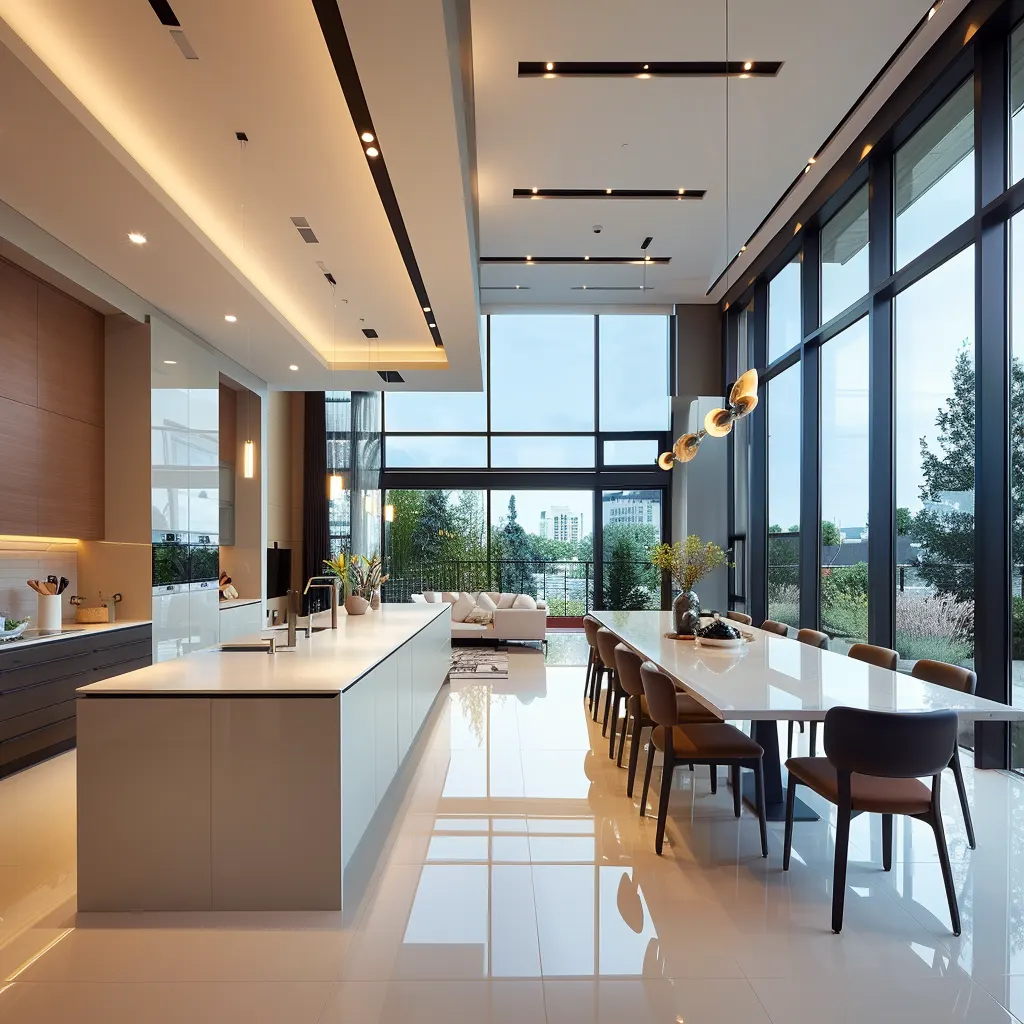 Nowoczesne kuchnie często łączą się z salonem czy jadalnią, tworząc otwartą przestrzeń do wspólnego spędzania czasu. Integracja ta wymaga przemyślanego planowania, aby wszystkie elementy współgrały ze sobą, tworząc spójny i funkcjonalny całokształt. Taka koncepcja sprzyja społecznej interakcji, umożliwiając gotowanie i rozmowy bez barier, co jest cenione w nowoczesnym życiu rodzin i społeczności.